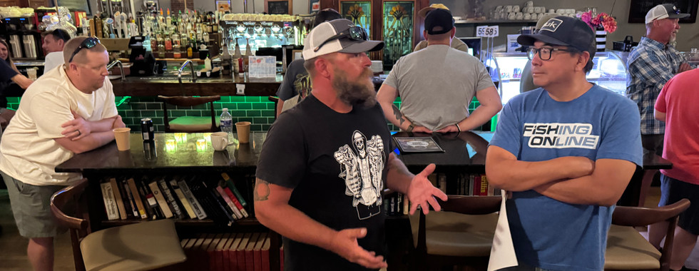 Before the anglers are officially in the event the gathered on Thursday evening for Opening Ceremonies which is a fancy word for check-in, late registration and mostly just a time of food, drinks and fellowship. The KAS format doesn't allow fishing on Friday morning so it frees the anglers up to relax and enjoy Thursday evening...and well into the night if they choose. Tournament HQ was Brewskis Coffee & Bar and from the turnout and the smiles on the anglers faces this was a much needed time to relax and share stories or theories from their practice.